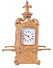 France, for Maple & Co., London and Paris, hour repeating carriage clock in the form of a sedan chair, the gilt brass case with rococo style ornament with plaques featuring naughty putti, scrolls, and shells, case sides with carrying handles, the top with scrolled brackets supporting a fleur de lis finial, and with well executed portrait of a young woman, behind glass at right side, Roman numeral white enamel dial, 8 day time and strike movement with lever platform, counting the hours on a gong, and repeating on demand, movement signed loss to gilding, case with polish residue, portrait very good, dial with hairline at upper right, hour hand bent, movement dirty, running, striking and repeating functional, light rust on gong and winding arbors