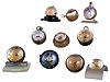 Clocks- 10 (Ten) "paperweight" small glass and metal desk clocks: maker and seller names include Imperial, Doxa, New Haven, Rosskopf, Westclox, Ingraham, and others unsigned, mostly vintage