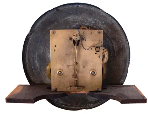 (1) the case retains most of its original finish and the top finial is absent and the lower finials are replacements. The lower left return is detached but present. There is a split through the middle of the crest. The dial is excellent. 21in x 51in 8.5in (2) The case retains its original finish and the crest is a replacement. The three lower finials are absent and the weight is a replacement. 18in x 46in x 7in.
