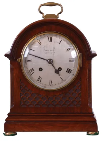 English bracket clock (John Perry, Nottingham) with a German spring driven fusee movement with a ting tang quarter hour strike in a mahogany case.