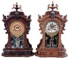 Clocks- 2 (Two) Ansonia Clock Co., New York, NY, "Monarch" walnut 8 day time and strike mantel clocks, one with alarm, c1880