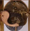 (1) Porcelain base and gilded brass case, but sadly has its porcelain top missing. Some of the gilding remains on the applied corner ornaments. Original porcelain dial is perfect. Hands are replacements. Original pendulum. Left side beveled glass panel has a corner chip. The other glass panels look fine. Brass door knobs are missing. Ht 12.5" (2) Rosewood and rosewood veneered case in original finish has veneer damage on the top back edge and small chip on the top left side molding. Original painted dial has scattered paint loss. Minute hand is a replacement. Hour hand is original. Period pendulum. The top finials are missing. Original tablet. Remains of a label on the back of the case. Ht 16.5"