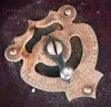 The walnut case can be easily mistaken for a music box. The European walnut case is in reasonable shape, has lost its finish and has a faded "Sonora" stencil on the front. The mechanism appears complete, but is not operating and may have a spring or click problem. The reproducer, tone arm and interior horn are present, but need attention. The crank is present.