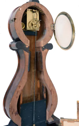 the case is in like new condition and looks great. The period banjo movement has T-bridge suspension, typical of the Willard workshop The dial is also period, but is an old repaint and the hands are custom hand made reproductions.
