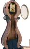 Lyre banjo, wall clock, 8 days, time only, weight driven Willard type period movement with T-bridge suspension in a reproduction gold fronted case with some older elements and reverse painted throat and lower tablets. The painted metal dial has Roman numerals and girandole style hands. the case is in like new condition and looks great. The period banjo movement has T-bridge suspension, typical of the Willard workshop The dial is also period, but is an old repaint and the hands are custom hand made reproductions.