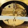 gilding bright, a bit dirty, feet bent and with replaced screws, minor specks of verdigris, dial with chip at 7:00, filled chip at center arbor, hands replaced, rear ring for mounting movement missing, replaced with a steel strip, movement and dial replaced, ticks and strikes