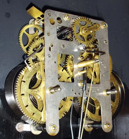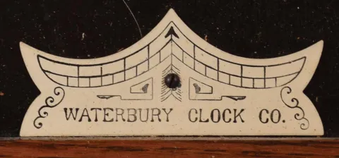Clocks- 2 (Two) (1) Waterbury Clock Co., Waterbury, Conn., "Stork" wall hanging clock with a spring driven 30 day timepiece movement in an oak case. c1915. (2) William L. Gilbert Clock Co., Winsted, Conn., "No. 3035" wall hanging clock with a spring