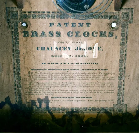 Clocks- 6 (Six): (1) Chauncey Jerome, New Haven, Conn. OG case only, c. 1850. (2) Gilbert pillar & scroll, case only, c. 1915. (3) Chauncey Jerome, Bristol, Conn, OG case only, c. 1840; (4) Unmarked half column and splat transition clock with a weight