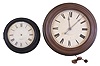 larger clock working, with a pair of unfinished reproduction hands, bezel replaced, the other without movement or backboard