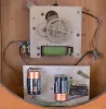 Clocks- 2 (Two) E Howard & Co., Boston, electric clocks: the first with 24 1/2 inch metal case, Roman numeral painted dial, signed nickel plated movement, the other a case only, 17 inch turned wooden case, and Roman numeral painted dial