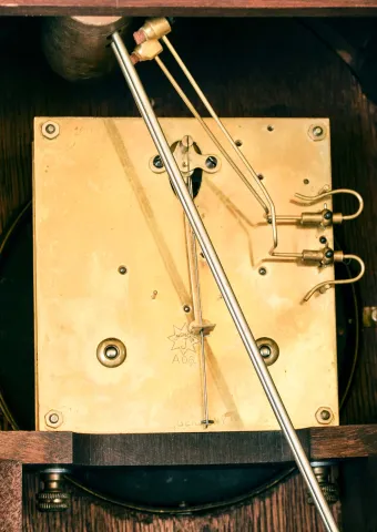 Clocks- 2 (Two): (1) Hamilton Clock Co., 8 day, time and strike Westminster chime spring brass movement bracket clock, c1978 (2) Germany, Junghans, 8 day, time and strike spring brass movement mantel clock, c. 1915.