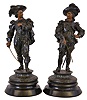 Two cast spelter figures on ebonized wooden bases, probably representing Don Caesar and Don Juan, or two of the musketeers