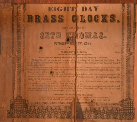 Seth Thomas Clock Co., Plymouth Hollow, Conn., "Column and Cornice" shelf clock with an 8 day weight driven time and strike brass lyre movement in a rosewood case.