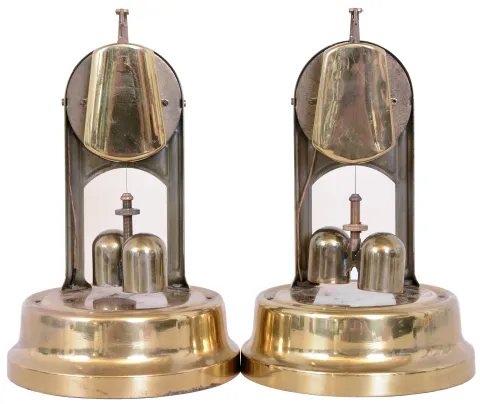 Clocks- 2 (Two) Tiffany Clock Co., Buffalo, NY "Never- Wind" anniversary- style electric clocks with torsion pendulums under domes