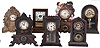 (1) The reproduction iron front is cast from aluminum. The movement is period, as are the dial, hands and bezel. Ht. 16in. (2) The case finish is quite rough. The painted dial has losses at several areas. The hands are original. Ht. 14.5in. (3) Although the iron front is not marked as Muller, it is period and very closely resembles the "Globe" iron front shown on page 103 in Arlyn Rath's book on Nicholas Muller. Part of the top of the iron front is missing. Ht.19in. (4) The original finish is very dark. The dial has darkened with age. The movement is not signed. The hands are period. Ht, 17in. (5) The finish has darkened with age. The paper dial has darkened with age. The hands are original. Ht. 16.5in. (6) The original finish has darkened to the point that it is difficult to determine what type of wood veneer was used. The right base return is missing. The paper dial is replaced. The hands are period. Ht.18.5in. (7) There is loss of paint on the iron front. The paper dial is original and darkened with age. The hands are period. Ht. 18.5in.