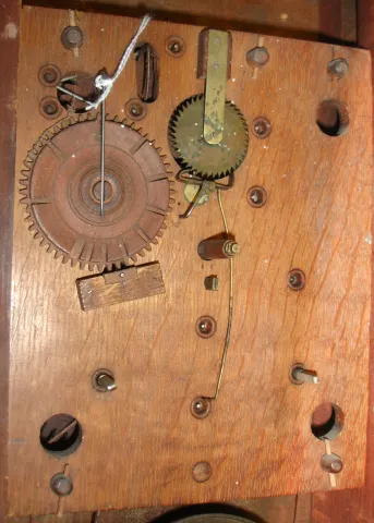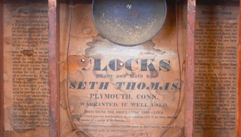 Seth Thomas Clock Co., Plymouth Hollow, Conn., 30 hour, time and strike weight wood movement pillar & scroll shelf clock.