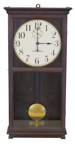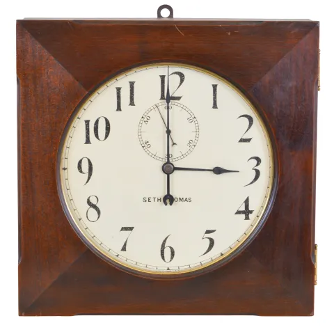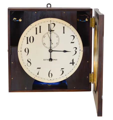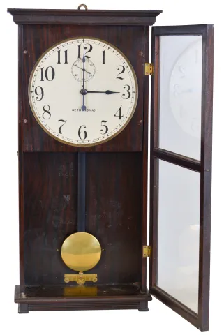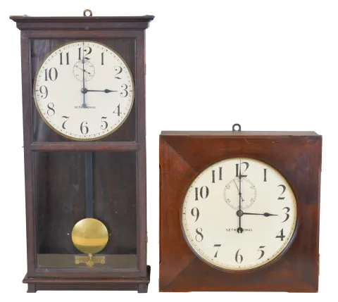 Clocks- 2 (Two) Seth Thomas: (1) "Self Winding No. 1", housing a Seth Thomas Self Winding movement No. 86 A.F. "Office No 9", housing a Seth Thomas Self Winding movement No. 86 A.F. The movement is driven by weight which operates directly in the center