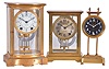 Clocks- 3 (Three): (1) English, 30 hour, weight brass movement gravity timepiece, c1925 (2) Seth Thomas Clock Co., Thomaston, Conn., "Empire No. 160" 8 day, time and strike spring brass movement crystal regulator mantel clock, c1925 (3) Seth Thomas Clock