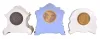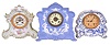 (1) Cream and green porcelain case in nice condition with some wear to the applied gold. Original porcelain dial is perfect and original hands. Visible escapement movement. Ht 11" (2) A very nice blue and white Jasperware (Wedgewood style) case. Original porcelain dial is perfect. Original hands. Nice label inside the rear door. Ht 11.75" (3) Porcelain case in a Dutch or Delft motif in nice condition. Original paper dial with brass grill is very clean for its age. Original hands. Movement is signed. Ht 9.5"