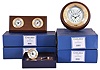 Clocks- 5 (Five) Chelsea Clock Company quartz movement clocks and desk sets, new / old stock in factory gift boxes: two #40- 137 "Cable Round Wall Clock"; desk set with pen on marble base; two #40136 "Cable Weather Station" with barometer on wood stand