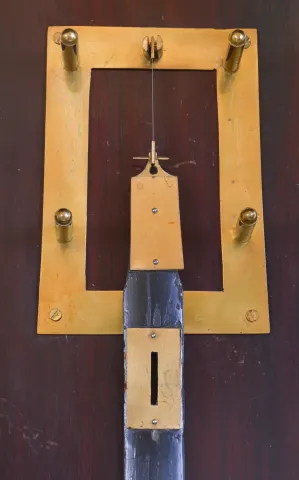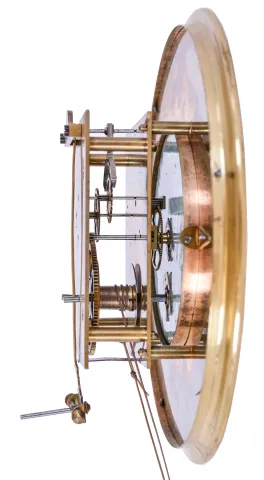 Germany, unsigned Vienna regulator style wall clock, 8 day, time only, weight driven movement in a serpentine style ebonized case with white enamel two part dial.