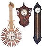 Clocks- 3 (Three), a 20th century gravity clock, a plastic, a 20th century battery operated Schatz swinging clock, and a small Gilbert wall clock, late 19th century