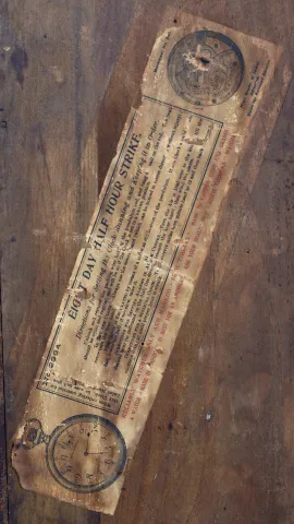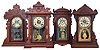 (1) Refinished walnut case in nice condition Original paper dial has areas of surface abrasion and wear. Original hands, tablet and pendulum. Partial label on the back of the case. Ht 22.5" (2) Walnut case in original finish. Original painted dial in nice condition. Original hands and pendulum. Tablet looks replaced. Ht 22" (3) Walnut case in original finish. This case is the Arno model with some slight variation to the top when compared to the catalog example. Original painted dial has some loss at the winding arbors. Original hands, pendulum and tablet. Ht 21" (4) Refinished oak case in nice condition. Original paper dial has age darkened a little and has some staining. Original hands, tablet and pendulum. Remains of a label inside the case. Ht 23.25"