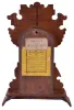 (1) The case finish is old and darkened. The paper dial has darkened with age. The hands may be replacements. The right decorative side piece to the case is missing. Ht. 22.5in (2) The case is missing part of the top piece as well as the lower left base return. Ht. 20.5in. (3) The case appears to have a later finish. The hands and dial are original. The case door glass is missing. Ht. 22.3in. (4) The original finish has darkened with age. The paper dial and hands are original. The decorative door glass is original. Ht. 22in. (5) The case has some original finish. The hands and dial are old and may be original. The alarm mechanism is missing and the gong may be a replacement, Ht. 22in.