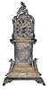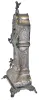 Desk clock in miniature tall clock form, silver case with bombe base and arch top, decorated with rococo style, repousse ornament, and with three cast putti, containing a thirty hour, continental verge fusee watch movement, 19th century