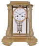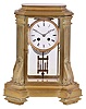 France, for Tiffany & Co., crystal regulator, architectural case with canted corners on a stepped and molded base, the corners decorated with fluted pilasters on inverted corbels, and supporting the stepped, molded top, Roman numeral white enamel dial,