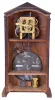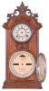 Clocks- 3 (Three): (1) Ithaca Calendar Clock Co., Ithaca, New York, "No. 8 Shelf Library", 8 day, time and strike spring brass movement double dial calendar clock. (2) Ithaca Calendar Clock Co., Ithaca, New York, "No. 7 Shelf Cottage", 8 day, time and