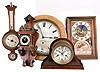 the gallery clock has been refinished to an unoriginal light color, and that surface now is wearing. The conditions of the other items in the lot are good, although the marine clock appears to have a broken time mainspring, but none were tested and all are sold as is with no further details available. Gallery clock overall diameter is 16 in, marine clock is 7 in, ht of barometer is 21 and Burpee Seed is 15 in