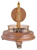 (1) The case has its original dark finish, but needs a little cleaning from being in storage. The mouse is complete with his tail. The balance wheel movement seems to tick okay, but will need to be serviced. The brass numbers for 11 and 12 are missing and a little damage on top edge. Take care at home that the wall hanging nail does not extend enough into the clock to hit the balance wheel directly in front of its hole. Ht 24 1/2" (2) Like- new original condition complete with glass dome in original polystyrene container. Rotating ball propelled by a thin turning finger; never great timekeepers but interesting novelties. Instruction sheet is missing. 7" tall.