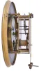 Austria, hanging regulator, walnut case with ebonized moldings, drops, and finial, Roman numeral, two piece white enamel dial, blued steel hands, 8 day timepiece movement with dead beat escapement, brass pendulum with wooden rod, and brass weight case with a few minor splits and separations, dial good, hands with minor discoloration, movement dirty, ticks and strikes, pendulum with minor tarnish, weight with tarnish
