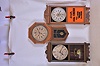 Clocks- 3 (Three): (1) The E. Ingraham Co., Bristol, Conn., Long Drop School House wall clock with a spring driven 8 day timepiece movement with a simple alarm mechanism in an oak case, c1900. (2) Wm. L. Gilbert Clock Co., Winsted, Conn., "Observatory" wall hanging clock with a spring driven 8 day timepiece movement with a simple calendar mechanism in an oak case, c1900. (3) New Haven Clock Co., New Haven, Conn. "Referee" wall clock with a spring driven 8 day timepiece movement in a darkly stained wood case, c1910. (1) The case has been nicely refinished. The paper dial is for a Waterbury clock and needs to be replaced with the proper Ingraham dial. The hands appear to be original. The stenciled door glass is original. Ht. (2) The case has been refinished. The original paper dial has stains in several areas. The hands are original. The door glasses are replacements. Ht. 38in. (3) The clock was made for the "Greater New York Clock Co" as indicated on the dial. The original paper dial is stained. The hands and pendulum are original. The "Regulator" logo has been restored. The movement is signed. Ht. 35.5in.