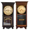 Clocks- 5 (Five): (1) Wm. L. Gilbert Clock Co., Winsted, Conn. "University" wall hanging clock with an 8 day spring driven timepiece movement in a mahogany case, c1913. (2) Sessions Clock Co., Forestville, Conn., "Regulator No. 1" wall hanging clock with