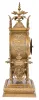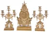 Lenzkirch, Germany, a three piece mantel garniture, ornate cast case with gryphons, masks, and a riot of indescribable ornament, with a pair of three arm candelabra similarly decorated, Roman numeral brass dial, 8 day time and strike movement, serial
