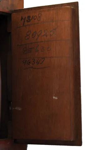 Mahogany case in nice condition in an old and possibly original finish. Off- white dial looks to be original with a couple tiny chips at the edge near 9 o'clock. Original hands. Heavy brass plate chain- driven fusee movement.