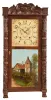 (1) The case has a heavy finish which is not original. The top pieces (splat, chimneys and returns) look right, but may have come from another clock, The original painted dial shows some loss and discoloration. The hands are original. Ht. 35.5in. (2) The case has some original finish. The painted wood dial has some horizontal cracking and other areas of loss. The hands are original. The door glass and mirror are original. Ht. 26.25in.