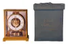 LeCoulture "Atmos" gilt brass and glass perpetual mantel clock, serial number 98063, front door hinges from side, in original green felt carrying box