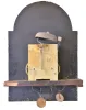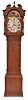 the case has an old finish in good condition with two age cracks in the plinth that have been filled. There is minor separation in hood and minor veneer chipping on lower left front. The feet have been replaced with quarter round molding. The movement is associated to the case. The weights are period and the cast iron bob is an older replacement.