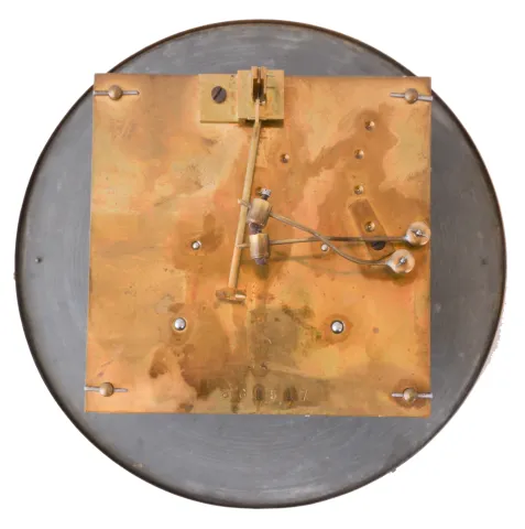 case in an old finish, and in very good condition overall, cast ornaments with some darkening, tarnish, dial with minor scratches, and verdigris staining around winding holes, hands good, ticks and strikes