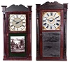 Clocks- 2 (Two): (1) Jeromes & Darrow, Bristol, Conn., 30 hour, time and strike weight wood movement half column & splat shelf clock, c1830; (2) Daniel Pratt, Jr., Reading, Mass., 30 hour, time and strike weight wood movement half clock and splat shelf