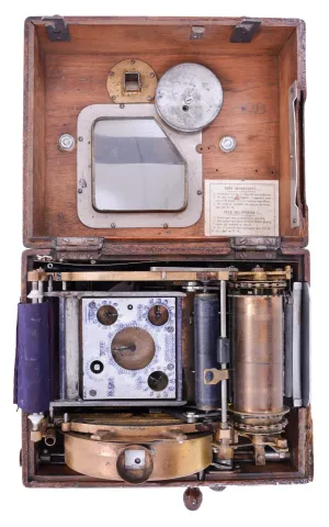 Clocks- 2 (Two) Time Recorders: (1) English 8 day spring driven movement punch clock with jeweled lever escapement movement stamped "9887", dial signed "Gledhill-Brook Time Recorder, Huddersfield, Eng." in a walnut case, c1900; (2) Belgian pigeon timer by