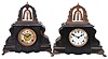 Clocks- 2 (Two): (1) Gilbert Clock Co., Winsted, Conn., "Curfew" shelf clock with an 8 day spring driven time and half hour strike movement in an enameled wood case, c1914; (2) Gilbert Clock Co., Winsted, Conn., "Curfew" shelf clock with an 8 day spring
