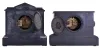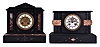 (1) the heavy stone case is in nice condition with the marble inserts and somewhat faded gold scrolls. There are a few very small corner chips on the front bottom edge. The thick beveled glass and white enamel dial are fine. Red stone pallets are present. The round movement ticks and strikes but was not tested long term; (2) black slate case is in good condition with the red marble inserts and faded gold scrolls. There are a few small corner chips on the front top edge. The beveled glass is fine. There are a few hairlines in the porcelain dial ring. The round movement ticks and strikes but was not tested long term.