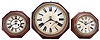 Clocks- 3 (Three): (1) Ansonia Clock Co., New York, NY, "8 Inch Octagon Lever" wall clock with a spring driven 30 hour lever timepiece movement in an oak case, c1880; (2) Waterbury Clock Co., Waterbury, Conn., "12 Inch Oak Lever" wall clock with a spring