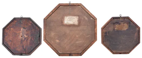 (1) The case may have been refinished some time ago and now has a soft lustre appearance. The original paper dial is in very good condition with age darkening and some wear. The hands are original; (2) The case has its original finish. The hands are original. The original painted dial is in good condition but has a darker varnish appearance. There is a nice label on the back of the case; (3) The case has original finish. The original paper dial is in very good condition with some age darkening. The hands are original.