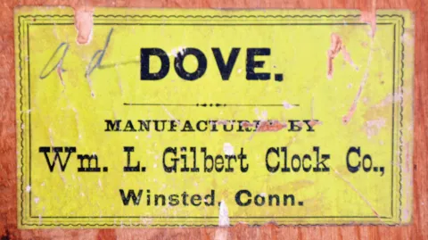 Clocks- 4 (Four): (1) E. Ingraham & Co., Bristol, Conn., unidentified model shelf clock with a spring driven, 8 day, time and strike movement in an oak case, c1895; (2) Wm. L. Gilbert Clock Co., Winsted, Conn., "Dove" shelf clock with a spring driven, 8