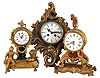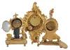 (1) Case has its original gilding worn in some spots. The white dial is in excellent condition. Front glass is missing. The unsigned movement will need servicing. (2) Bezel glass is missing. Dial, hands, and case are in good condition Movement strikes, but does not tick. (3) Case is in nice condition with a small chip on the back left leg. The Cupid figure looks to have been painted. Bezel is loose. Bright miniature movement ticks but was not tested long term. Sold "as is".